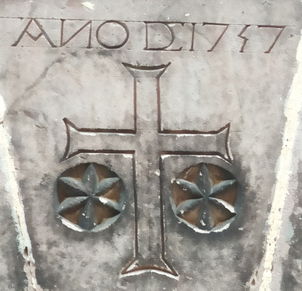 En este dintel de la casona del Parra, podemos observar una modalidad de cruz gamada denominada esvástica, Según la tradición en la antigua lengua indoeuropea del Sancristo, esta cruz gamada se implanta como protección y bienestar en el hogar y las familias que lo habitan, presencia divina, buena suerte y augurios.
