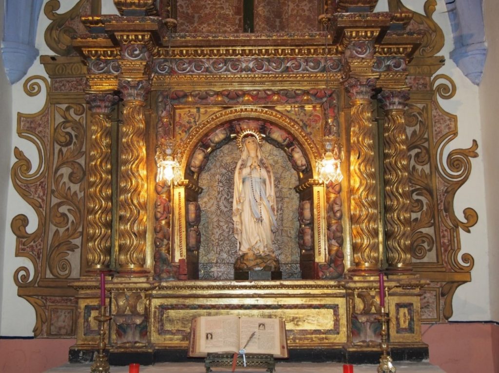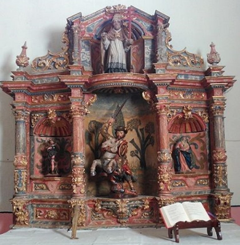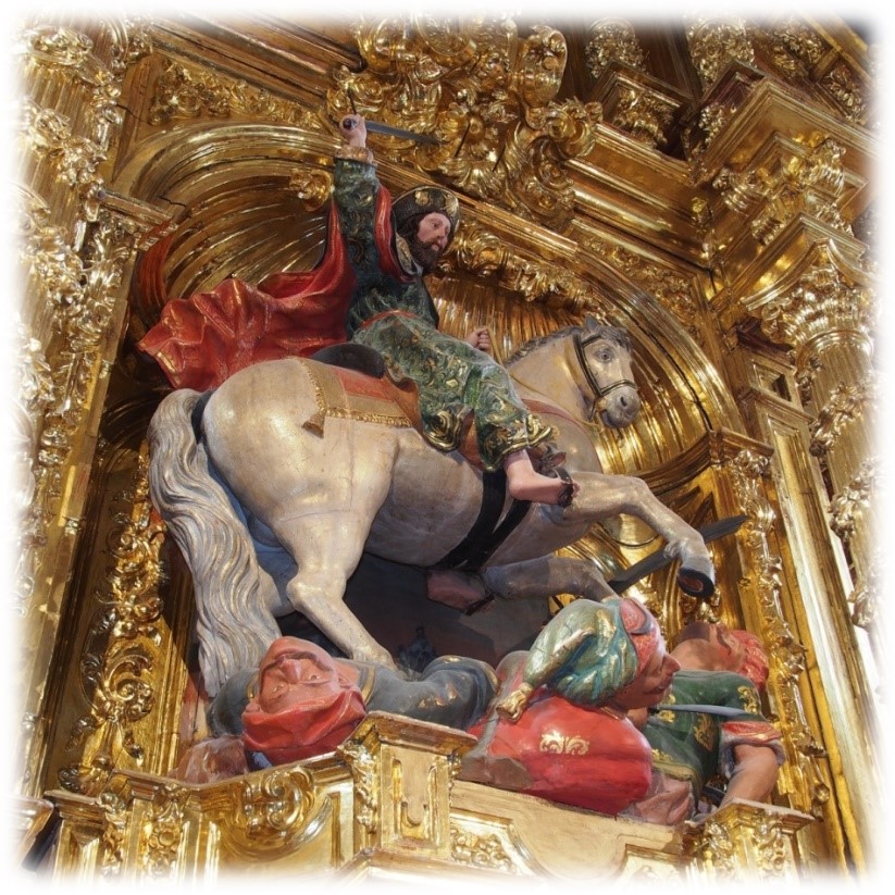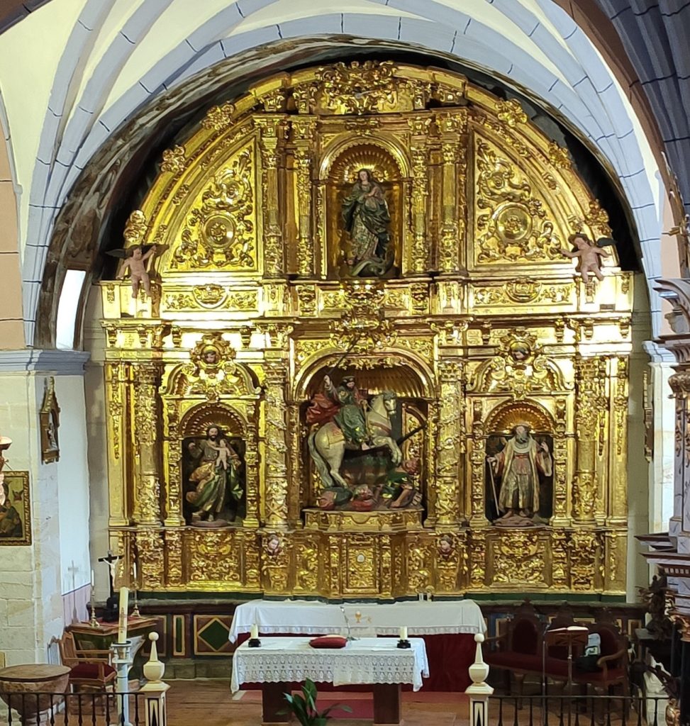 Otro curioso retablo de Santiago Apóstol elaborado en 1715 destaca en el frontal la calle lateral derecha, junto al retablo de San Miguel.