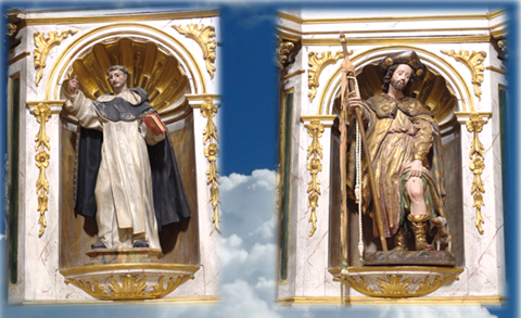 En el pasillo central, a ambos lados de la nave, se encuentran dos retablos iguales de estilo Neoclásico. Ambos retablos fueron realizados a finales de siglo XVIII principios del XIX.