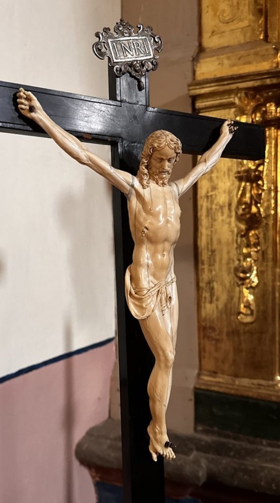 .- Cruz con figura en marfil de Jesucristo crucificado.